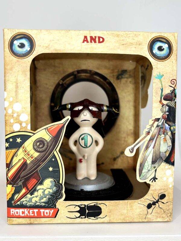 Art Toy Pi, como siempre, desnudo con un número 1 pintado en el pecho en color verde y rodeado con un círculo del mismo color. En la cabeza lleva un casco de color marrón que le tapa la mitad del rostro y del que nacen dos cuernos, uno a cada lado, es el jefe de alguna tribu de alguna selva de algún lugar.