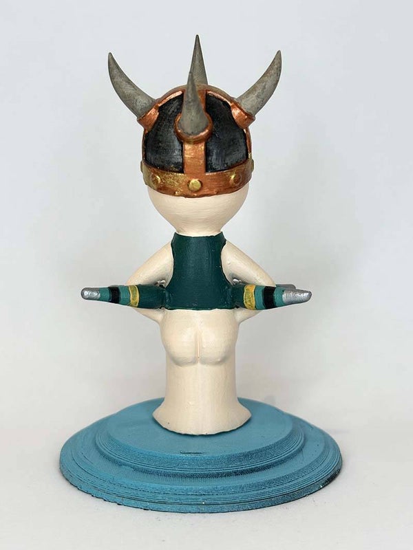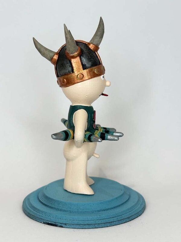 Impreso en impresora 3d y repasado y pintado a mano.