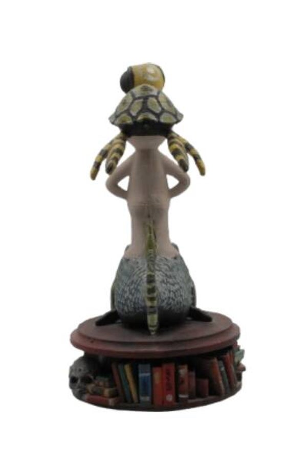 El Art Toy Pi, subido en un pez japonés, debajo un joyero que puedes abrir para guardar tus tesoros, claro está, si te fías de Pi.