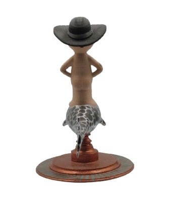 Nuestro querido Art Toy Pi está navegando encima de un tiburón plateado con topitos negros.